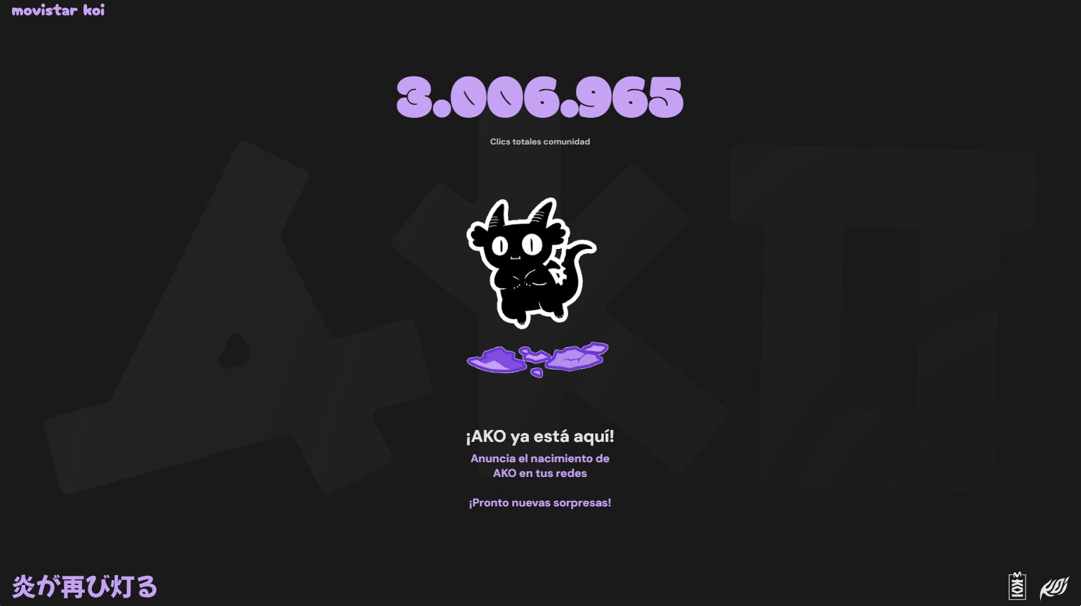 Durante las últimas semanas el club promocionó una web en la que la comunidad de Movistar KOI tenía que apoyar dando clicks a un huevo hasta que eclosionase. Tras más de tres millones de clicks la mascota por fin ha salido de su cascarón, y el diseño ha sorprendido a muchos pues no se trata de una carpa o un fénix, animales identificativos en KOI, sino en un gato con cuernos y cola de dragón.