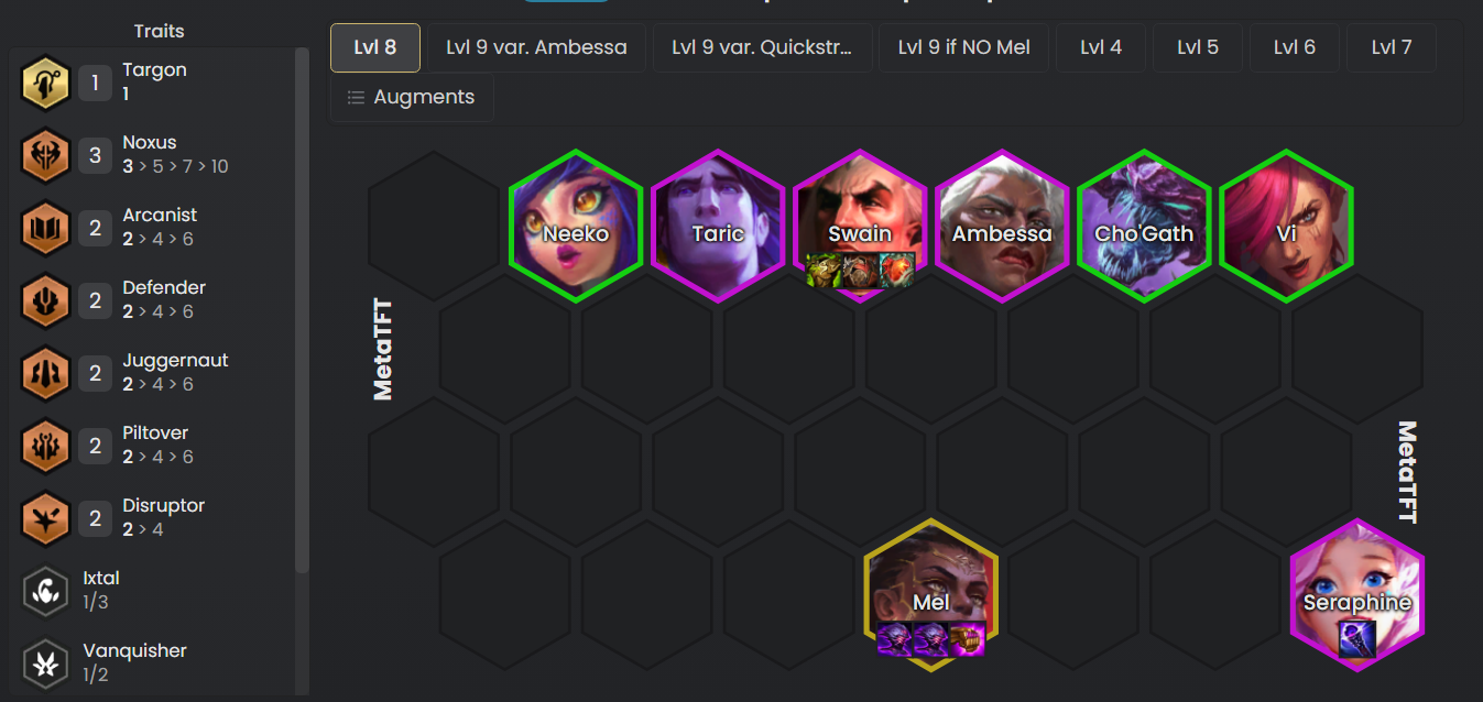 - Llevaremos 3 Noxus, 2 Arcanistas y otro mix de sinergias para potenciar a todas las unidades.