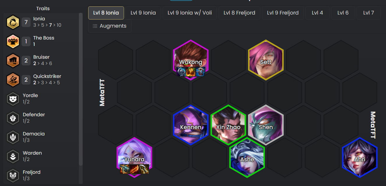 - Siempre tendremos que tener Ionia como sinergia hasta subir rápido al 8 y buscar aumentos para potenciar a Yunara.