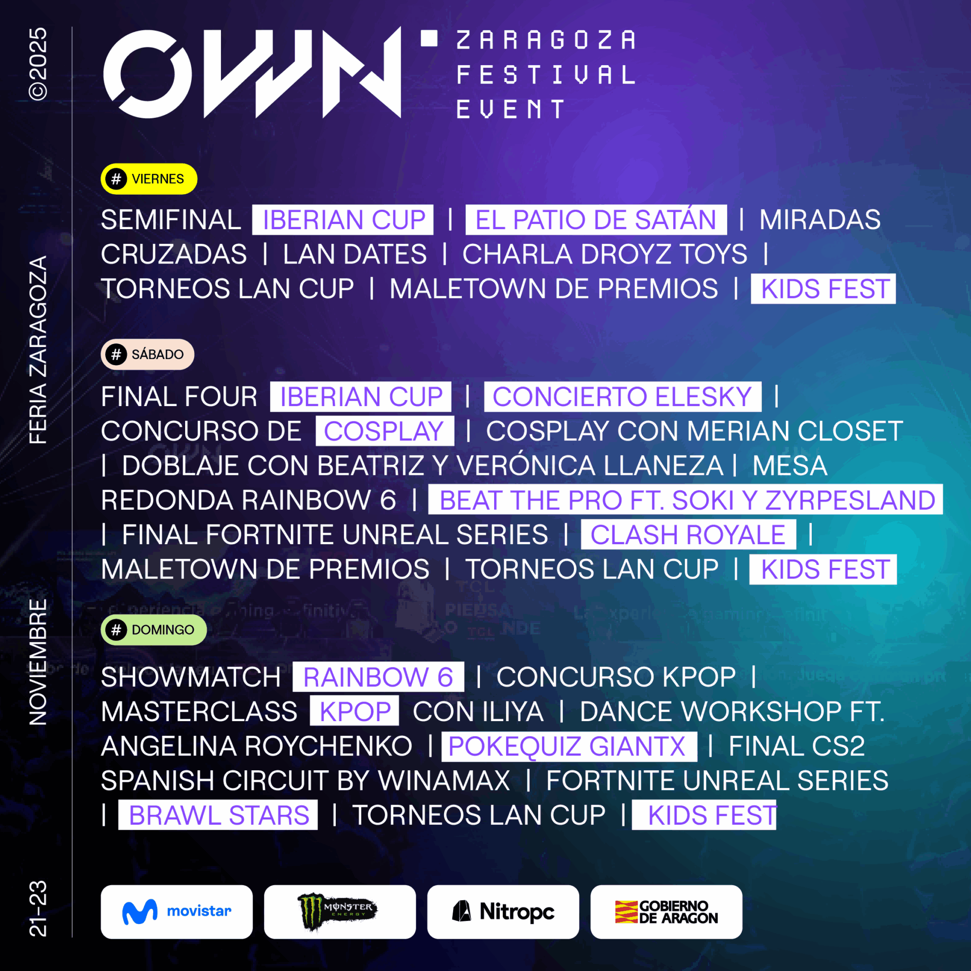 El mayor evento de gaming y entretenimiento digital de España llega a Aragón. OWN Zaragoza 2025 se celebrará del 21 al 23 de noviembre en Feria Zaragoza, con tres días de competiciones, experiencias y espectáculos que convertirán la ciudad en el epicentro nacional del gaming.