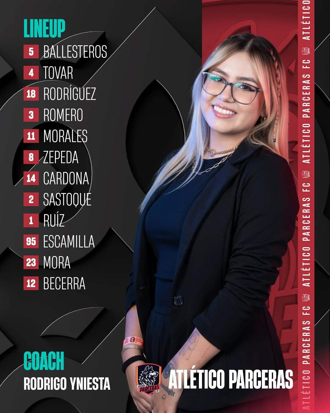 - Jugadoras: Ballesteros, Tovar, Rodríguez, Romero, Morales, Zepeda, Cardona, Sastoque, Ruíz, Escamilla, Mora y Becerra.