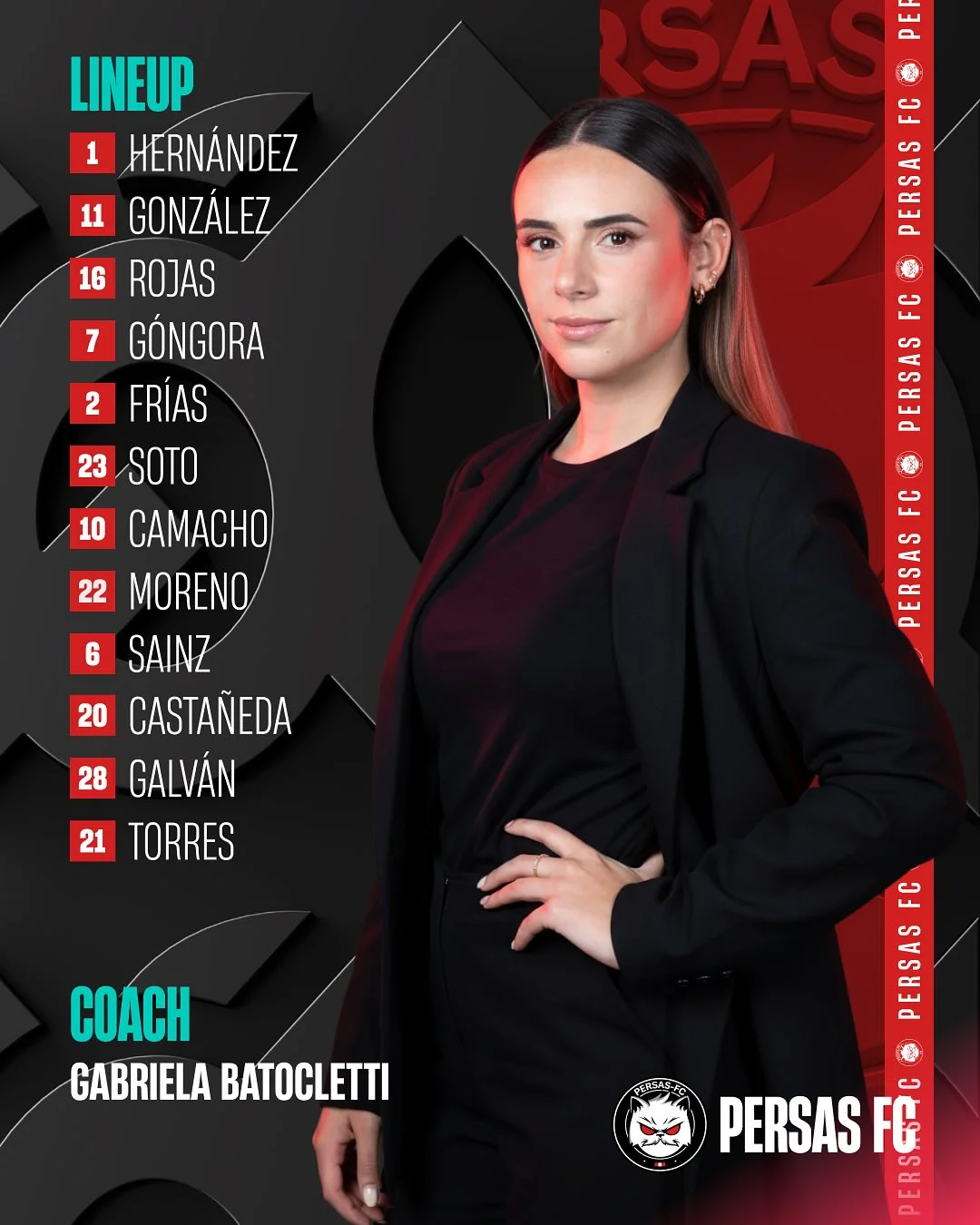- Jugadoras: Hernández, González, Rojas, Góngora, Frías, Soto, Camacho, Moreno, Sainz, Castañeda, Galván y Torres.