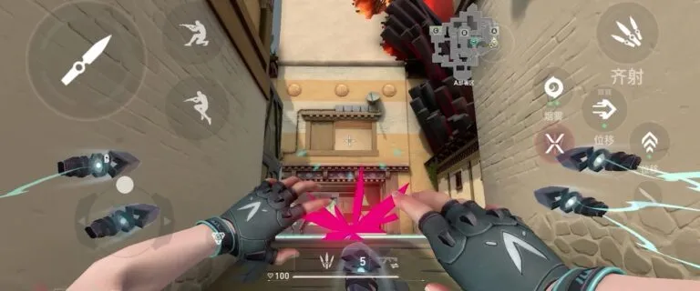 El juego es literalmente el mismo, pero lo que más llama la atención es la interfaz: a la derecha tenemos las habilidades, el salto y el minimapa y a la izquierda, el táctil de movimiento, el agacharse, cuchillo y disparo.